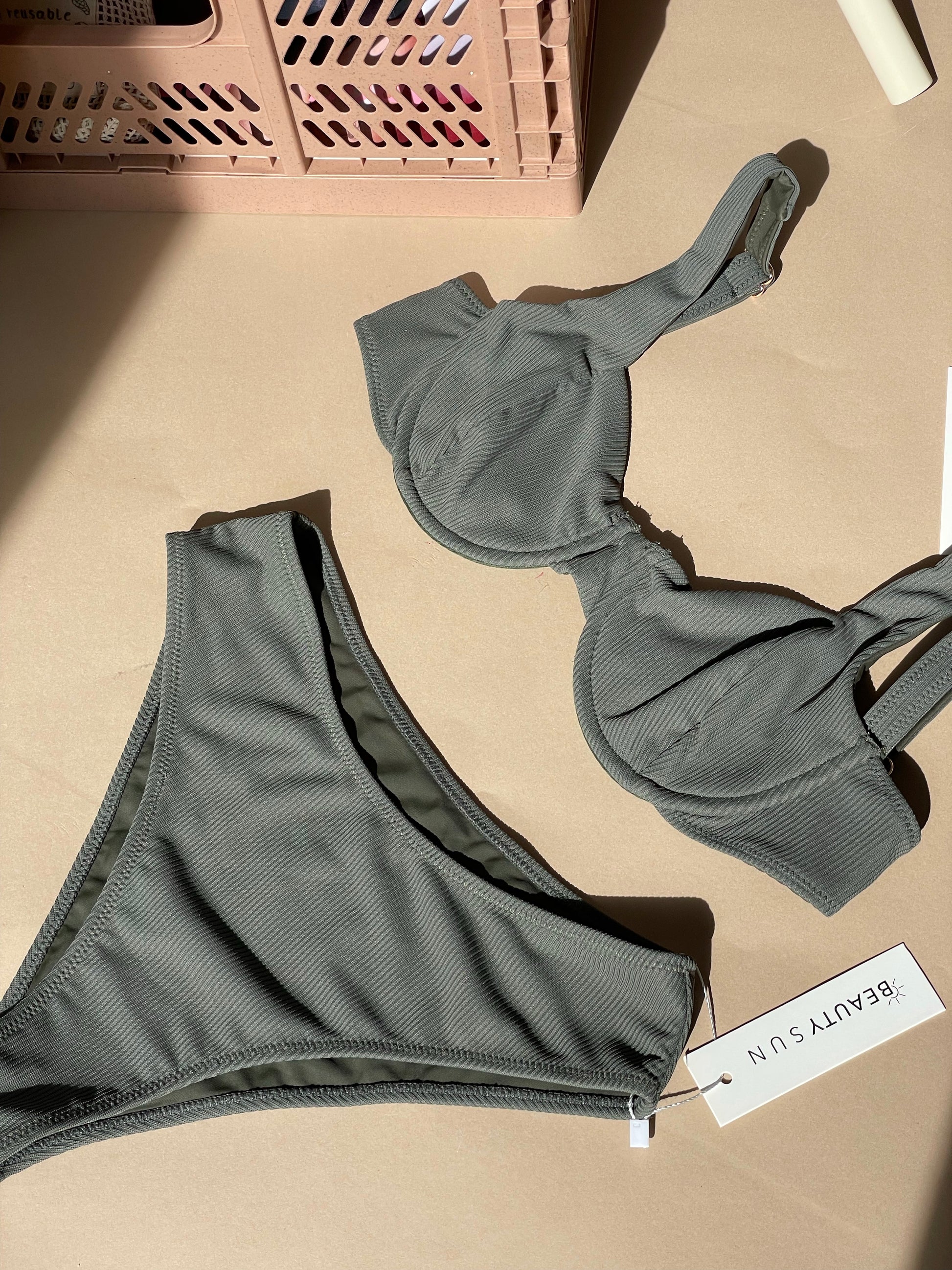 ISLAND - High-waisted swimsuit bottoms in khaki ribbed fabric